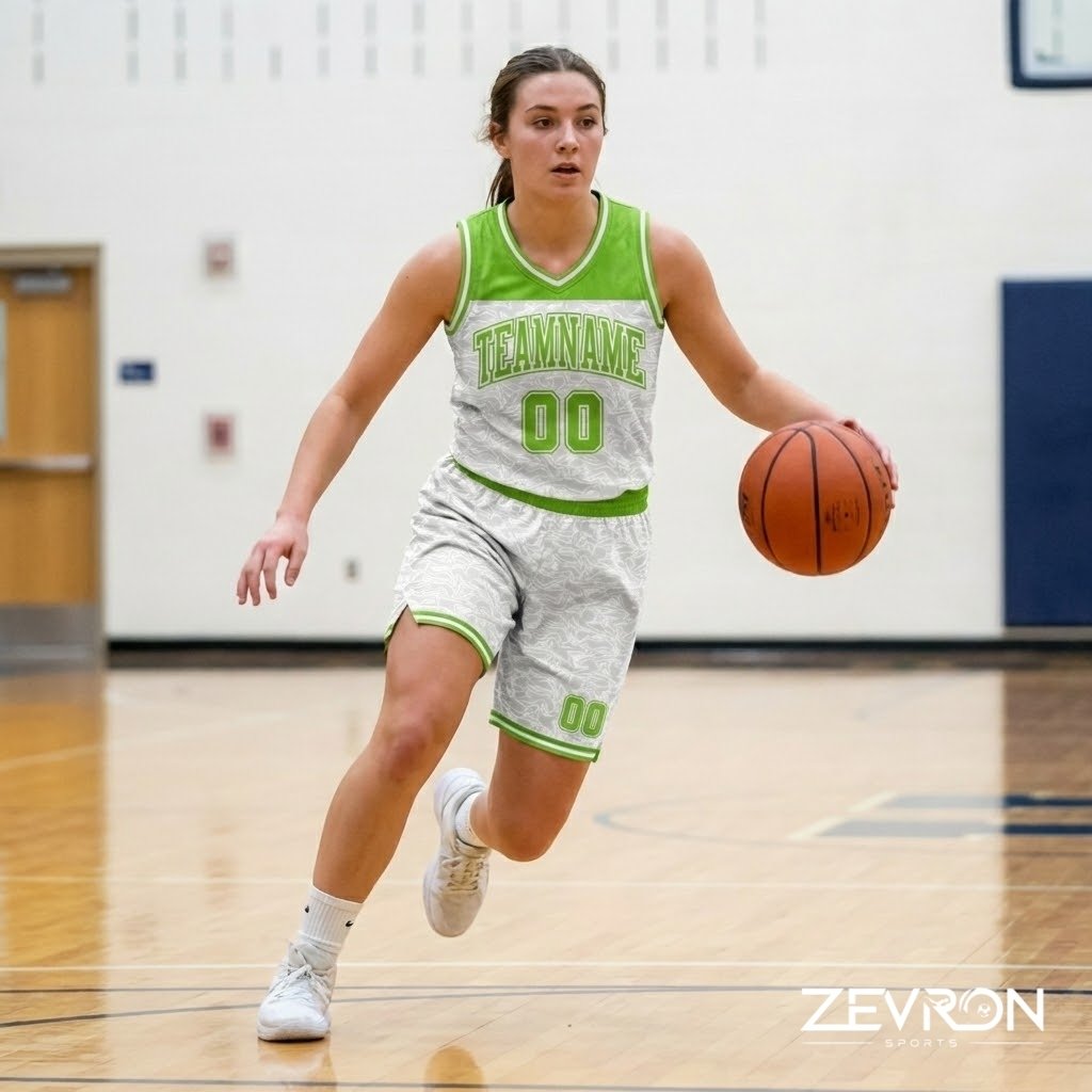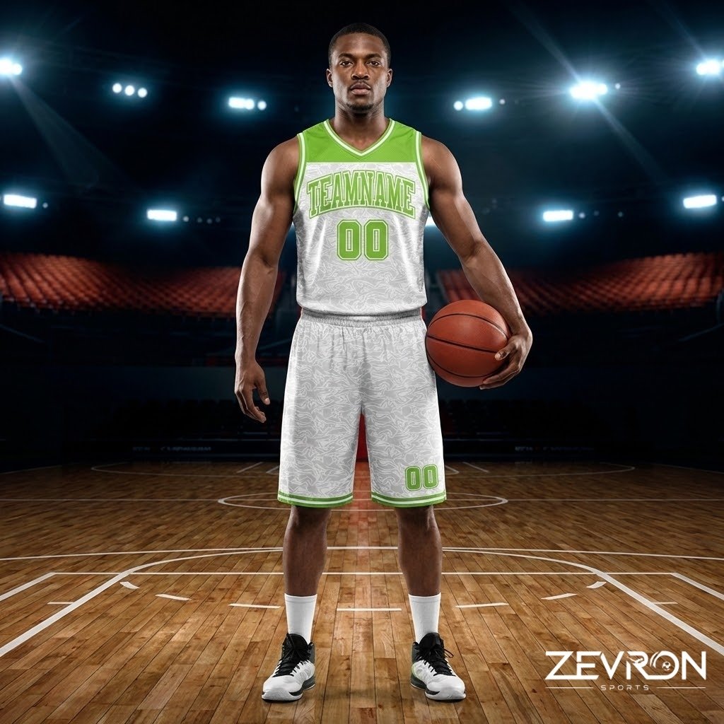 Zevron Sports is a custom basketball uniform manufacturer offering fully personalized team jerseys with premium fabric, colors, names, and numbers.